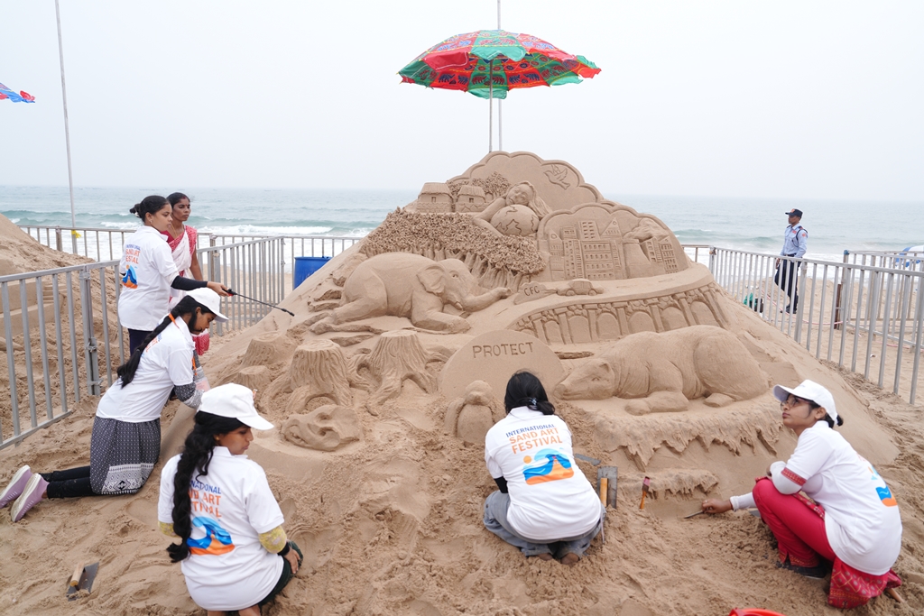 କୋଣାର୍କ (୦୧.୧୨.୨୦୨୫) : ଓଡ଼ିଶା ସରକାରଙ୍କ ପର୍ଯ୍ୟଟନ ବିଭାଗ ଦ୍ଵାରା ଚନ୍ଦ୍ରଭାଗାର ବେଳାଭୂମିରେ ଆୟୋଜିତ ୧୫ ତମ ଆନ୍ତର୍ଜାତିକ ବାଲୁକା କଳା ମହୋତ୍ସବ ୨୦୨୫ର ଦ୍ବିତୀୟ ଦିନରେ ବିଷୟବସ୍ତୁ ଥିଲା ପୁରୁଷ ବାଲୁକାଶିଳ୍ପୀଙ୍କ ପାଇଁ ପରିବେଶ ପର୍ଯ୍ୟଟନ ଓ ବନ୍ୟପ୍ରାଣୀ ଏବଂ ମହିଳା ବାଲୁକାଶିଳ୍ପୀଙ୍କ ପାଇଁ ପରିବେଶ ଏବଂ ଜଳବାୟୁ ପରିବର୍ତ୍ତନ । ଏହି ବିଷୟବସ୍ତୁକୁ ନେଇ ଭାରତବର୍ଷ ଓ ବିଦେଶରୁ ଆସିଥିବା ବାଲୁକା ଶିଳ୍ପୀ ଗଣ ଚନ୍ଦ୍ରଭାଗାର ବେଳାଭୂମିକୁ ସଜାଇଥିଲେ ସେମାନଙ୍କ କଳା ନୈପୁଣ୍ୟ । ସମୁଦ୍ରର ଅଥଳ ଜଳରାଶି ଆଉ ଅସରନ୍ତି ବେଳାଭୂଇଁର ବାଲୁକା ଭୂଖଣ୍ଡ ଚିତ୍ରିତ ହୋଇ ଉଠିଥିଲା । ଚଳିତବର୍ଷ ଭାରତରୁ ପ୍ରାୟ ୧୪୦ ଜଣ ଶିଳ୍ପି ଯୋଗ ଦେଇଛନ୍ତି, ସେଥିରୁ ୪୦ ଜଣ ମହିଳା ଓ ୯୫ ଜଣ ପୁରୁଷ । ସ୍ପେନ୍, ରୁଷିଆ, ଜାପାନ, ପର୍ତ୍ତୁଗାଲ ଓ ଶ୍ରୀଲଙ୍କାରୁ ପ୍ରାୟ ୫ ଜଣ ବିଦେଶୀ ବାଲୁକା ଶିଳ୍ପି ମଧ୍ୟ ଚନ୍ଦ୍ରଭାଗା ବେଳାଭୂମିରେ ତାଙ୍କ କଳା ନୈପୁଣ୍ୟକୁ ରୂପ ଦେବା ପାଇଁ ଅଂଶଗ୍ରହଣ କରିଛନ୍ତି ।