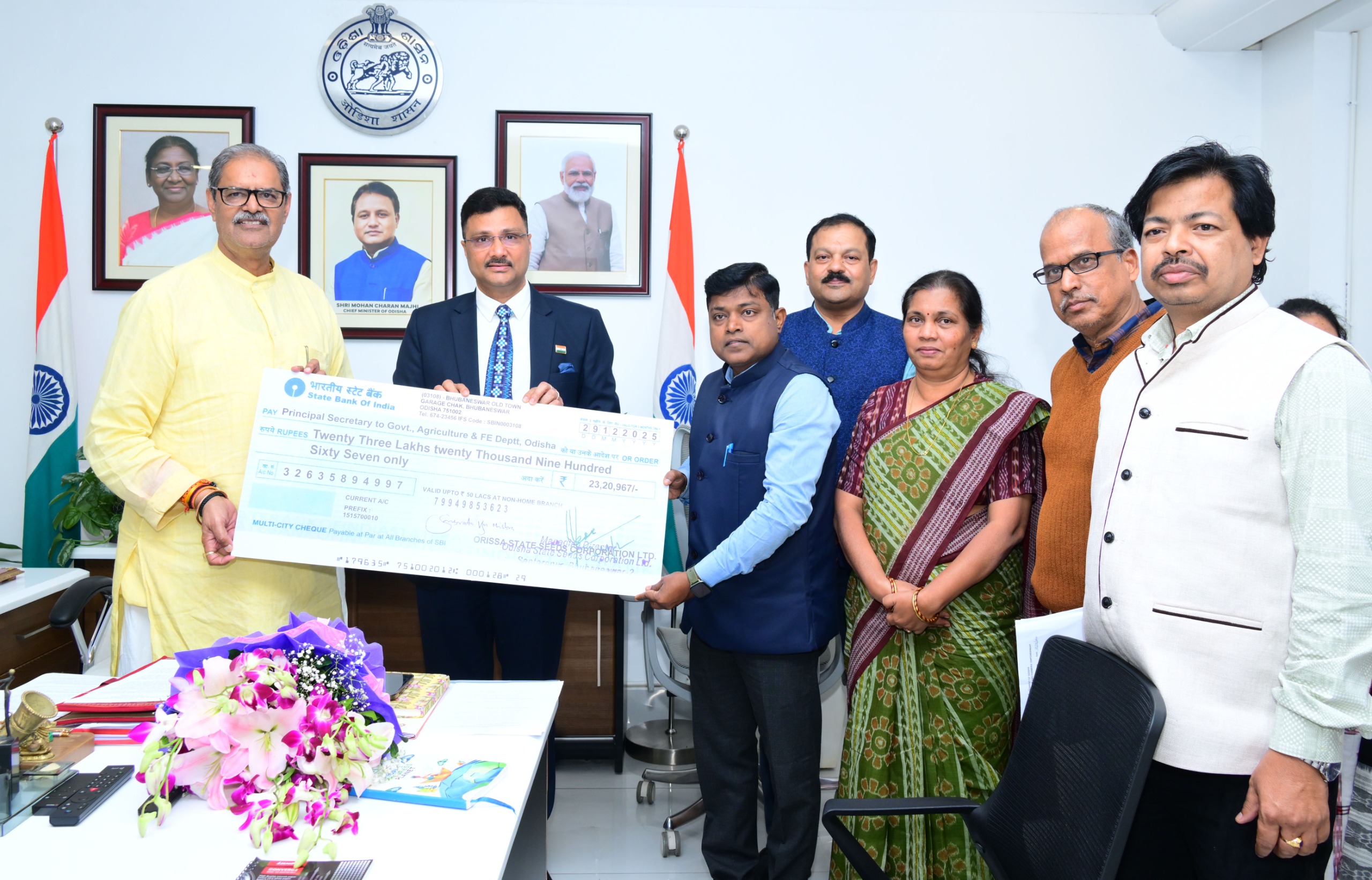 ତଦନୁଯାୟୀ କୃଷି ଏବଂ କୃଷକ ସଶକ୍ତିକରଣ ବିଭାଗ, ଓଡିଶା ଅଧୀନରେ ଥିବା ତିନୋଟି ଉଦ୍ୟୋଗ (PSU) ଯଥା ଓଡ଼ିଶା କୃଷି ଶିଳ୍ପ ନିଗମ, ଓଡ଼ିଶା ରାଜ୍ୟ ବିହନ ନିଗମ ଲିମିଟେଡ୍ ଓ ଓଡ଼ିଶା ରାଜ୍ୟ କାଜୁ ଉନ୍ନୟନ ନିଗମ ଲିମିଟେଡ୍ ଉଲ୍ଲେଖନୀୟ ଆର୍ଥିକ ପ୍ରଦର୍ଶନ କରି, ତାଙ୍କର ନିର୍ଦ୍ଦେଶକ ମଣ୍ଡଳୀର ସୁପାରିଶ ଓ ଅଂଶୀଦାରମାନଙ୍କ ବାର୍ଷିକ ସାଧାରଣ ସଭାର ଅନୁମୋଦନ କ୍ରମେ, ଆନୁଷ୍ଠାନିକ ଭାବରେ ରାଜ୍ୟ ସରକାରଙ୍କୁ ଲାଭାଂଶ ବାବଦେ ଆଜି ମୋଟ ୬ କୋଟି ୩୯ ଲକ୍ଷ ୯୭ ହଜାର ୫୮୯ ଟଙ୍କା, ମାନ୍ୟବର ଉପମୁଖ୍ୟମନ୍ତ୍ରୀ, କୃଷି ଏବଂ କୃଷକ ସଶକ୍ତିକରଣ, ଶକ୍ତି, ଓଡ଼ିଶା ସରକାର, ଶ୍ରୀ କନକ ବର୍ଦ୍ଧନ ସିଂହଦେଓଙ୍କ ସଦୟ ଉପସ୍ଥିତିରେ ଲୋକସେବା ଭବନ, କାର୍ଯ୍ୟାଳୟ ପ୍ରକୋଷ୍ଠରେ ପ୍ରଦାନ କରାଯାଇଛି। ତନ୍ମଧ୍ଯରୁ ଓଡ଼ିଶା କୃଷି ଶିଳ୍ପ ନିଗମ (OAIC) ଆର୍ଥିକ ବର୍ଷ ୨୦୨୩-୨୪ ପାଇଁ ୫ କୋଟି ୨୩ ଲକ୍ଷ ୭୪ ହଜାର ୨୨୨ ଟଙ୍କା, ଓଡ଼ିଶା ରାଜ୍ୟ ବିହନ ନିଗମ ଲିମିଟେଡ୍ (OSSC) ଆର୍ଥିକ ବର୍ଷ ୨୦୨୧-୨୨ ପାଇଁ ୨୩ ଲକ୍ଷ ୨୦ ହଜାର ୯୬୭ ଟଙ୍କା ଏବଂ ଓଡ଼ିଶା ରାଜ୍ୟ କାଜୁ ଉନୟନ ନିଗମ ଲିମିଟେଡ୍ (OSCDC) ଆର୍ଥିକ ବର୍ଷ ୨୦୨୨-୨୩ ଏବଂ ୨୦୨୩-୨୪ ପାଇଁ (ପ୍ରତ୍ୟେକ) ୪୬ ଲକ୍ଷ ୫୧ ହଜାର ୨୦୦ ଟଙ୍କା (ମୋଟ ପରିମାଣ ୯୩ ଲକ୍ଷ ୦୨ ହଜାର ୪୦୦ ଟଙ୍କା) ପ୍ରଦାନ କରିଛନ୍ତି ।