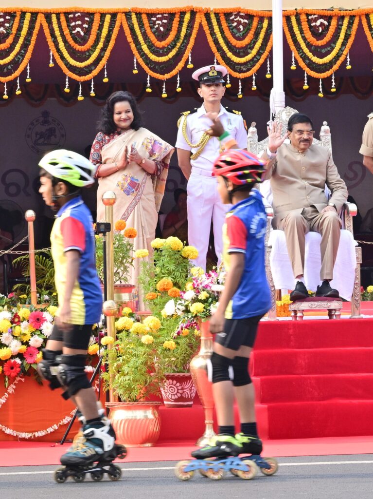 The 77th State-level Republic Day celebration was held with grandeur and patriotic fervour at Mahatma Gandhi Marg in the State Capital today. Hon’ble Governor Dr. Hari Babu Kambhampati unfurled the National Flag at 8.30 AM and received the ceremonial salute at the parade.