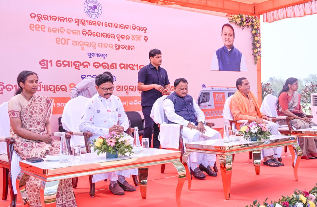 ଆମ୍ବୁଲାନ୍ସ ସେବାର ଦକ୍ଷତା ଆଣି କମ୍ ସମୟରେ ରୋଗୀଙ୍କୁ ହସ୍ପିଟାଲ ପହଞ୍ଚାଇବା ଲକ୍ଷ୍ୟରେ ମୁଖ୍ୟମନ୍ତ୍ରୀ ଶ୍ରୀ ମୋହନ ଚରଣ ମାଝୀ ଆଜି କଳିଙ୍ଗ ଷ୍ଟାଡିୟମ ଠାରେ ଦ୍ବିତୀୟ ପର୍ଯ୍ୟାୟରେ ୨୫୦ଟି ନୂଆ ଆମ୍ବୁଲାନସର ଶୁଭାରମ୍ଭ କରିଛନ୍ତି।