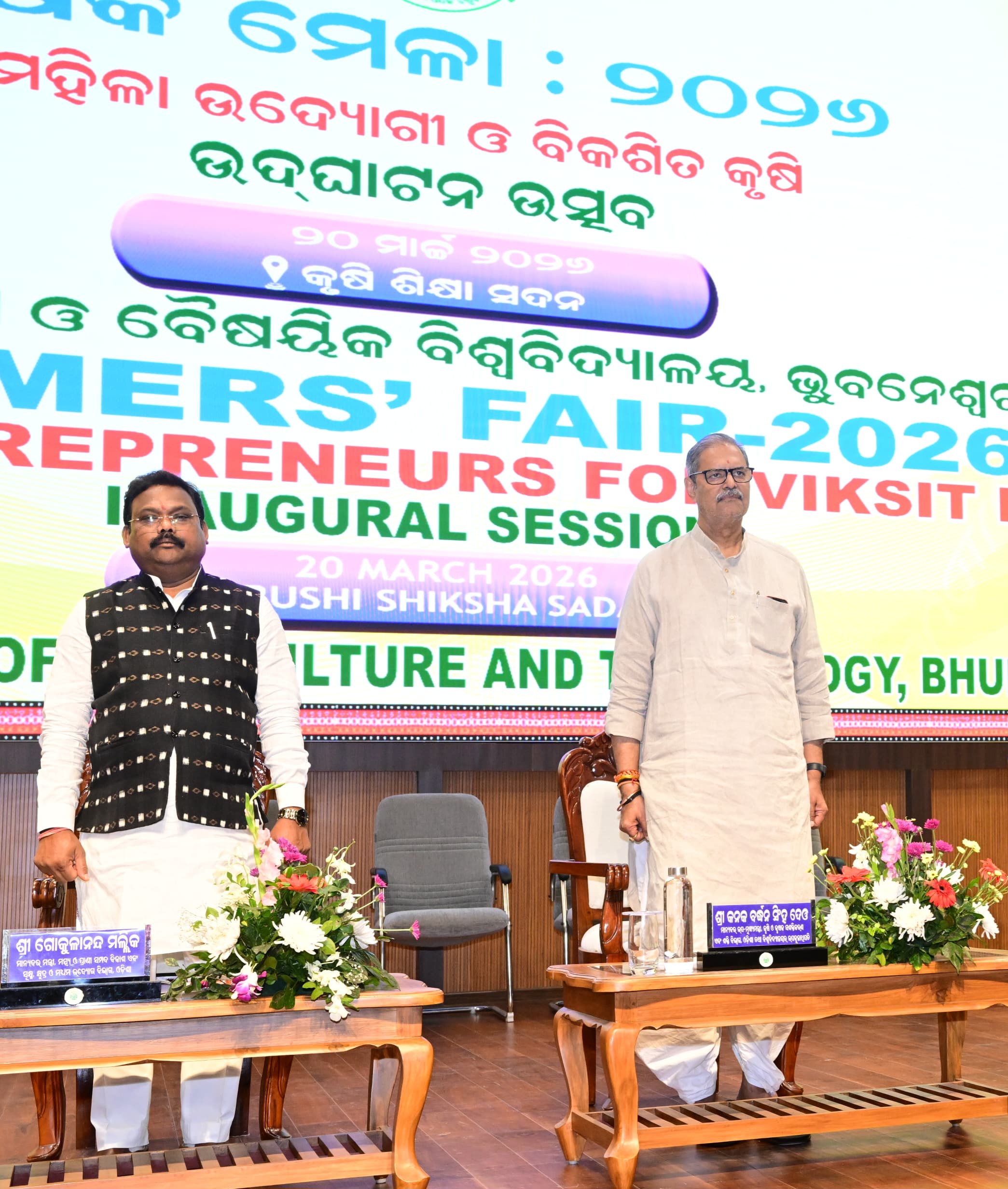 ଭୁବନେଶ୍ୱର, ୨୦ ମାର୍ଚ୍ଚ: ଓଡିଶା କୃଷି ଓ ବୈଷୟିକ ବିଶ୍ୱବିଦ୍ୟାଳୟ (ଓୟୁଏଟି) ପରିସରରେ ଥିବା କୃଷି ଶିକ୍ଷା ସଦନରେ ଆଜି “ଓୟୁଏଟି କୃଷକ ମେଳା – ୨୦୨୬” ଅନୁଷ୍ଠିତ ହୋଇଛି । “ମହିଳା କୃଷି ଉଦ୍ୟୋଗୀ ଓ ବିକଶିତ କୃଷି” ଶୀର୍ଷକ ଏହି ମେଳାର ଉଦଘାଟନୀ ସମାରୋହରେ ଉପମୁଖ୍ୟମନ୍ତ୍ରୀ ତଥା କୃଷି, କୃଷକ ସଶକ୍ତିକରଣ ଓ ଶକ୍ତି ମନ୍ତ୍ରୀ ଏବଂ ଓୟୁଏଟିର ପ୍ରୋ-ଚାନ୍ସେଲର ଶ୍ରୀ କନକ ବର୍ଦ୍ଧନ ସିଂହଦେଓ, ମତ୍ସ୍ୟ ଓ ପ୍ରାଣିସମ୍ପଦ ବିକାଶ ମନ୍ତ୍ରୀ ଶ୍ରୀ ଗୋକୁଳାନନ୍ଦ ମଲ୍ଲିକ ଯୋଗଦେଇଥିଲେ।